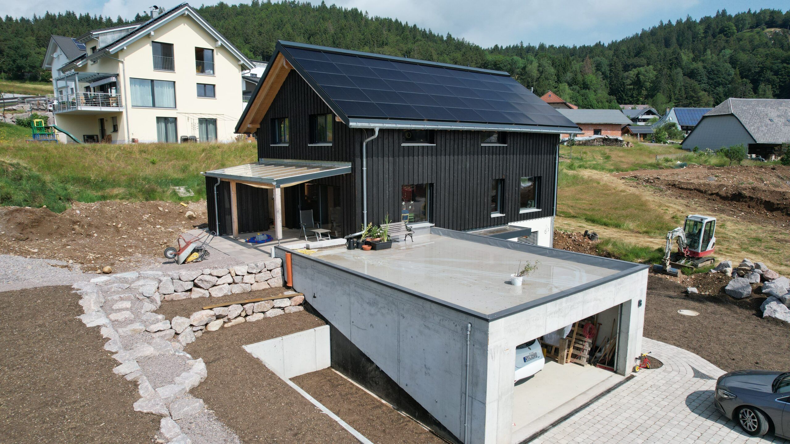 Im Zuge dieses Projekts wurden im Bereich des Erdgeschosses und der Garage sämtliche Rohbau- und Betonarbeiten präzise und termingerecht ausgeführt. Darüber hinaus umfasste die Leistung die fachgerechte Erschließung sowie die Entwässerungsarbeiten. Durch eine sorgfältige Planung und hochwertige Ausführung konnte eine solide Grundlage für die weitere Bauphase geschaffen werden.